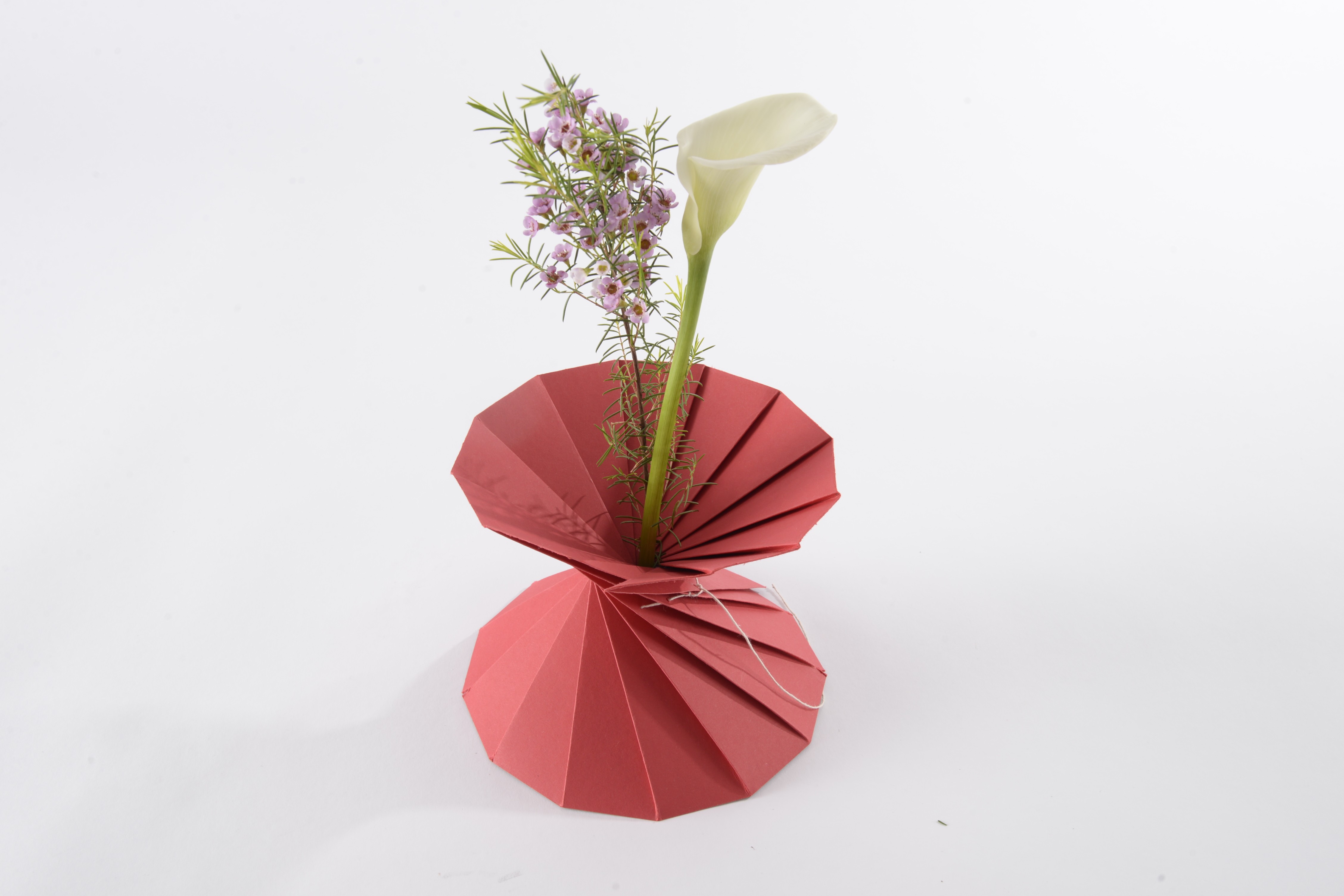 The card is designed to be a solution for the recipient of the flowers to easily display the flowers since the card deploys into a vase by just pulling the string. A jar or small cup of water can be placed under the vase for increased longevity.